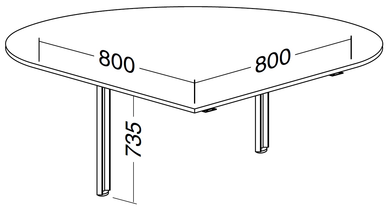 Pracovní deska je z LTD 25 mm zakončená ABS hranou a hliníkové nohy jsou ve standardním provedení povrchově upraveny eloxováním. Podnoží je se stolovou deskou spojeno pomocí rozpěrných kolíků, které zaručují mimořádnou stabilitu celého přísedu. Kvalitu přísedů dokládá certifikace podle přísných evropských norem a ergonomických požadavků na tento typ nábytku. Hliníkové nohy jsou opatřeny rektifikací 15 mm pro vyrovnání nerovností podlahy. Výška přísedů je standardně 735 mm.