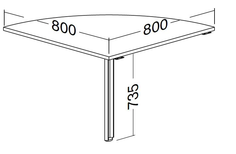 Pracovní deska je z LTD 25 mm zakončená ABS hranou a hliníkové nohy jsou ve standardním provedení povrchově upraveny eloxováním. Podnoží je se stolovou deskou spojeno pomocí rozpěrných kolíků, které zaručují mimořádnou stabilitu celého přísedu. Kvalitu přísedů dokládá certifikace podle přísných evropských norem a ergonomických požadavků na tento typ nábytku. Hliníkové nohy jsou opatřeny rektifikací 15 mm pro vyrovnání nerovností podlahy. Výška přísedů je standardně 735 mm.
