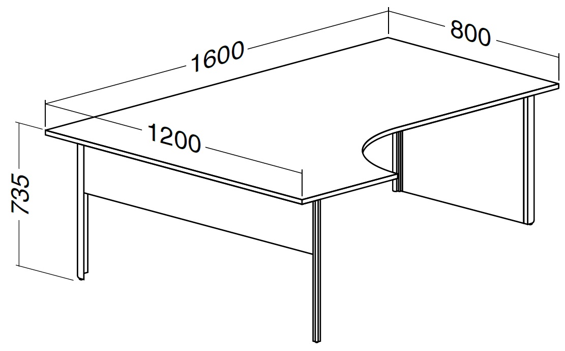 ALFA 100 Stůl kancelářský 120 Pravý Deska rohová 1200x1800x25 AL eloxovaný př...VÍCE