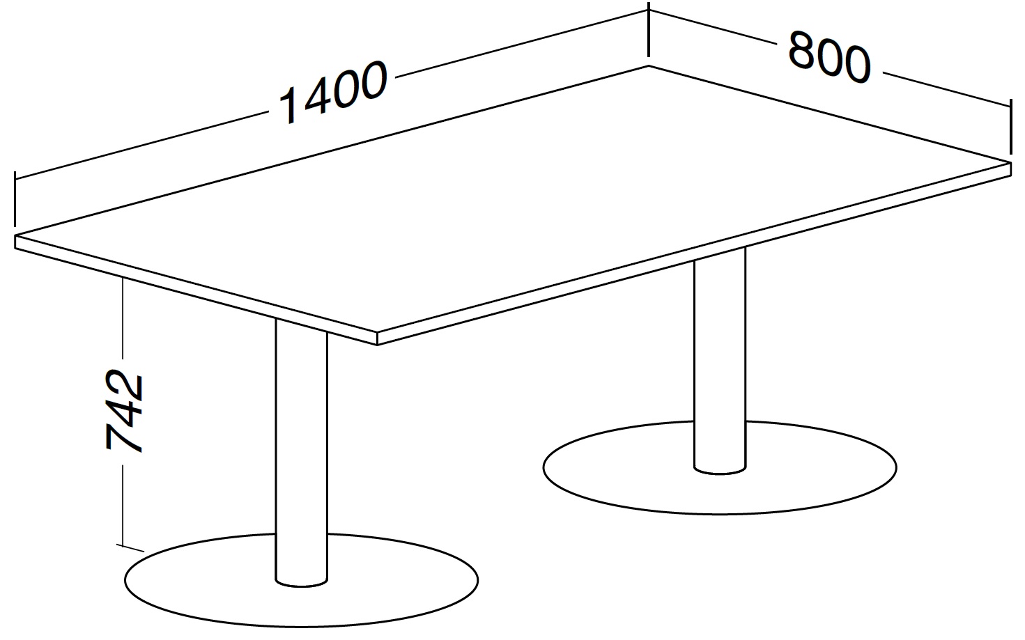 Kruhové podnoží se skládá ze soustružené ocelové desky o průměru 550 nebo 400 mm, na níž je připevněna svislá noha v horní části opatřena nosným křížem, který je přímou podporou stolové desky. Výška stolu je 742 mm. Povrchová úprava kovových částí stolového podnoží je provedena epoxy-polyesterovou práškovou barvou, která zaručuje vysokou odolnost proti všem druhům poškození, obvyklým v kancelářském provozu. Stolová deska je z LTD 25 mm zakončená ABS hranou.