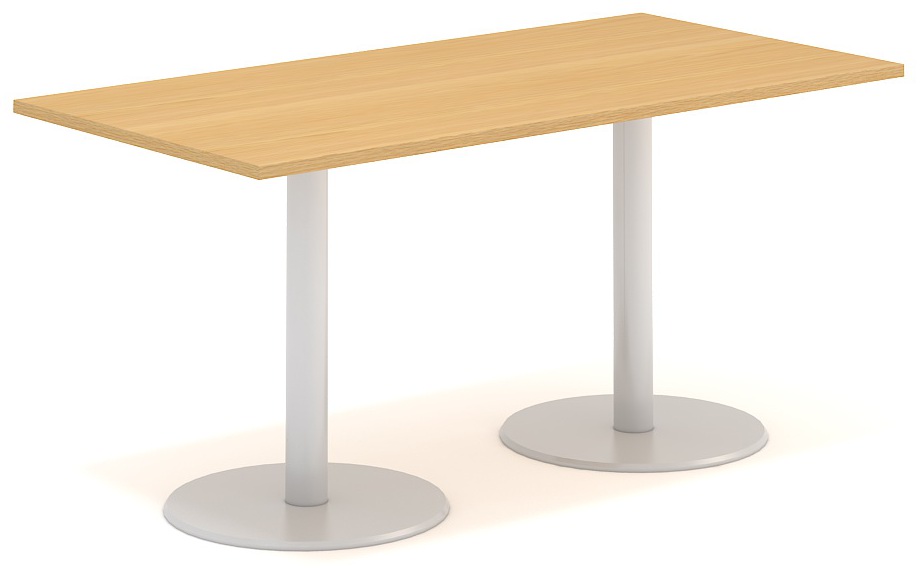 Kruhové podnoží se skládá ze soustružené ocelové desky o průměru 550 nebo 400 mm, na níž je připevněna svislá noha v horní části opatřena nosným křížem, který je přímou podporou stolové desky. Výška stolu je 742 mm. Povrchová úprava kovových částí stolového podnoží je provedena epoxy-polyesterovou práškovou barvou, která zaručuje vysokou odolnost proti všem druhům poškození, obvyklým v kancelářském provozu. Stolová deska je z LTD 25 mm zakončená ABS hranou.