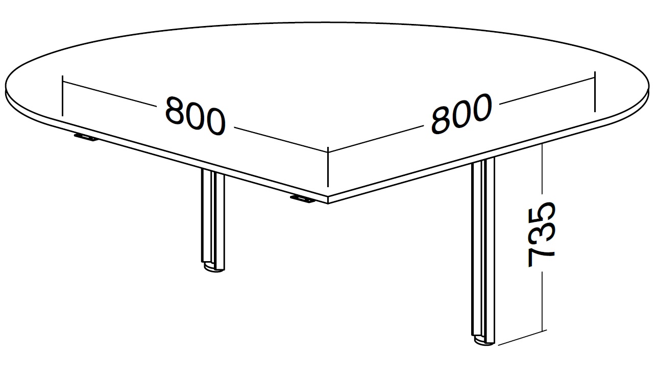 Pracovní deska je z LTD 25 mm zakončená ABS hranou a hliníkové nohy jsou ve standardním provedení povrchově upraveny eloxováním. Podnoží je se stolovou deskou spojeno pomocí rozpěrných kolíků, které zaručují mimořádnou stabilitu celého přísedu. Kvalitu přísedů dokládá certifikace podle přísných evropských norem a ergonomických požadavků na tento typ nábytku. Hliníkové nohy jsou opatřeny rektifikací 15 mm pro vyrovnání nerovností podlahy. Výška přísedů je standardně 735 mm.