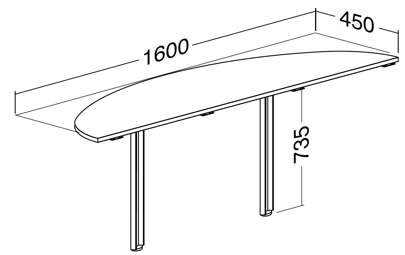 Pracovní deska je z LTD 25 mm zakončená ABS hranou a hliníkové nohy jsou ve standardním provedení povrchově upraveny eloxováním. Podnoží je se stolovou deskou spojeno pomocí rozpěrných kolíků, které zaručují mimořádnou stabilitu celého přísedu. Kvalitu přísedů dokládá certifikace podle přísných evropských norem a ergonomických požadavků na tento typ nábytku. Hliníkové nohy jsou opatřeny rektifikací 15 mm pro vyrovnání nerovností podlahy. Výška přísedů je standardně 735 mm.